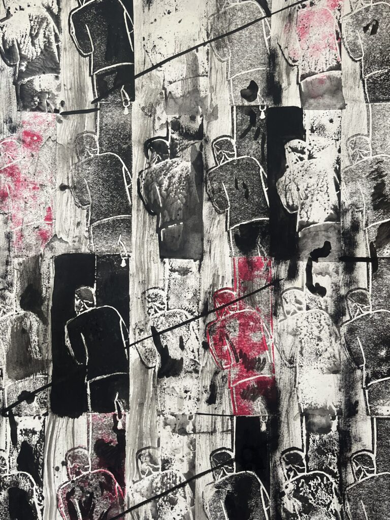 There’s gotta be something here, right? I look at the various colourful paintings I’ve ignored up until now, each of them arranged to form a lumpy rectangle, and I start to rip them off the walls, hoping for some exit. I throw the couch cushions everywhere, look under potted plants, the couch, the radio, and even the carpet itself. That’s when I realised the branding on its tag, June Corp. Of course, I was here in this room yesterday. Only, it wasn’t so messed up then. If I remember correctly, to get into this room, I had to get past the receptionist. But no matter how many doors I go through, I always end up in the same place. I was on my way to meet the CEO when I, when I, didn’t? I sat on the couch and someone greeted me, but I can’t remember anything after that.